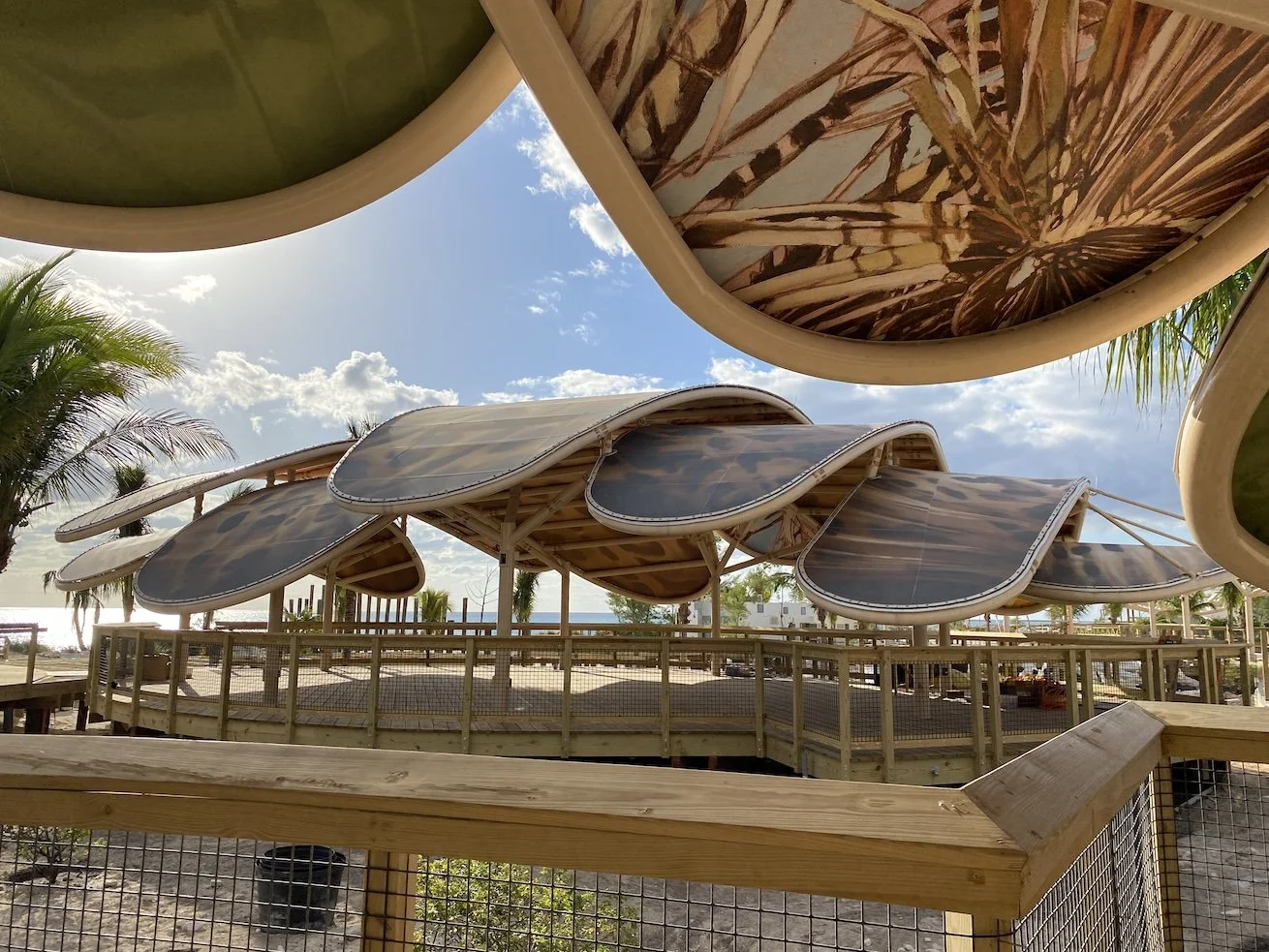 True-True Too BBQ is a beautiful example of architecture designed to look like oversized seashells scattered across the shores of Disney Lookout Cay.