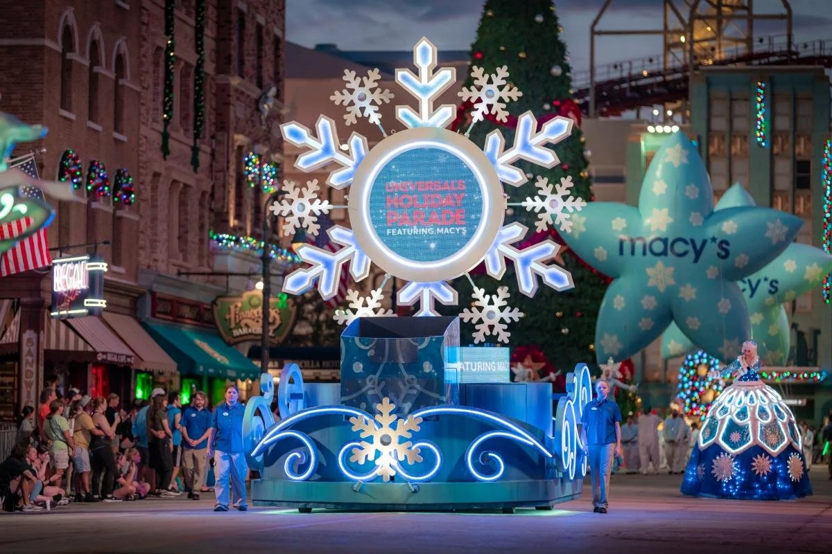 Universal’s Holiday Parade Featuring Macy’s usually takes place at 5:30 p.m. in Universal Studios Florida. Dates and times are subject to change without notice so be sure to check the Universal Orlando mobile app.