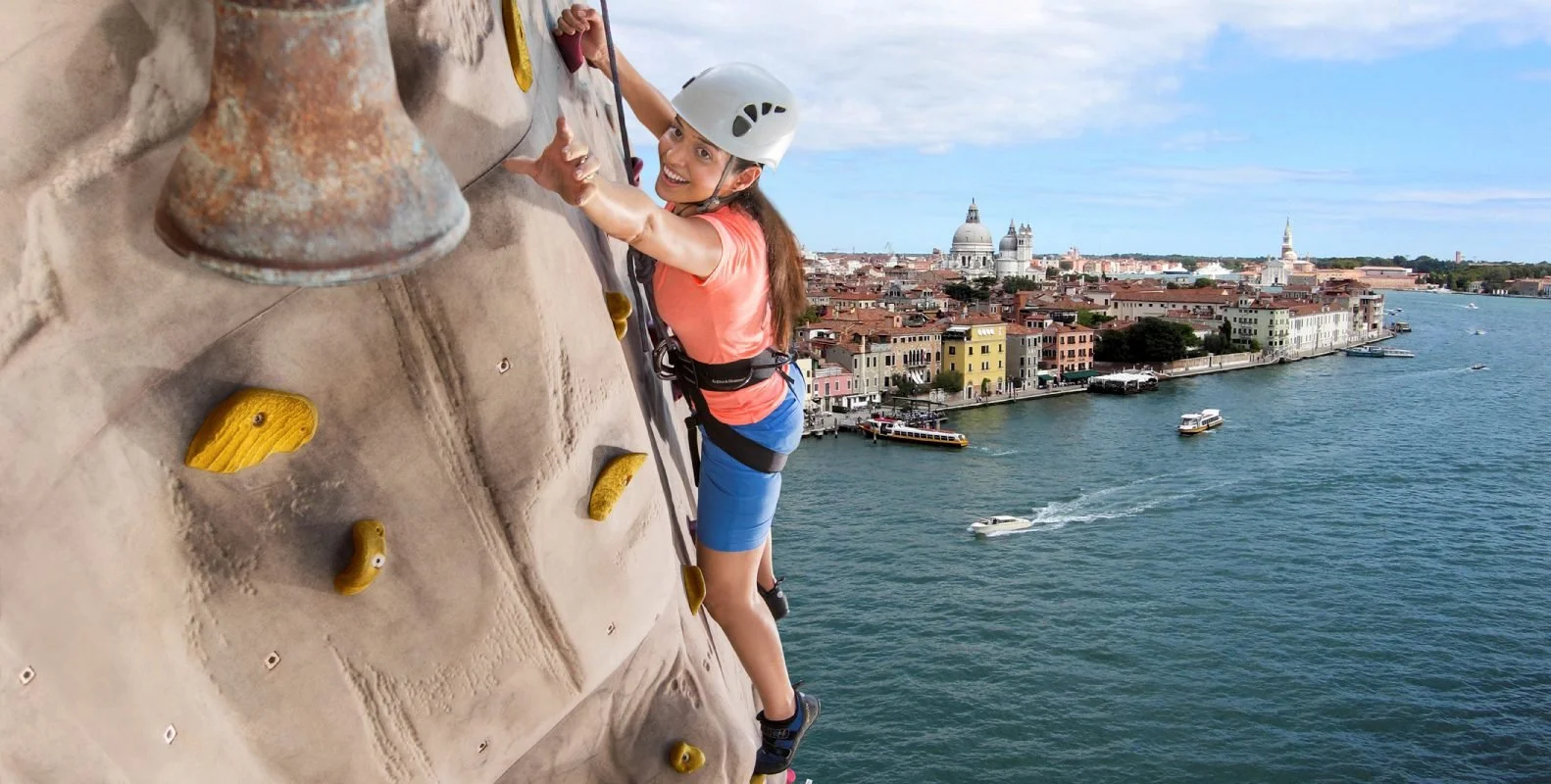 Thrill Island, home to towering waterslides and the iconic Crown’s Edge ropes course.